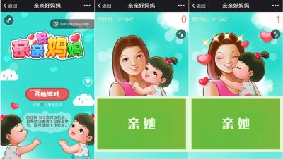 亲亲好妈妈:麻麻辛苦操劳了一辈子,节日告白,怎么吻她也不嫌多!粉丝点击“亲她”按钮,即能为妈妈送上一个吻。在规定时间内,送吻越多,得分越高。