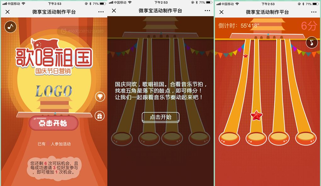 一、国庆节微信活动H5游戏篇: