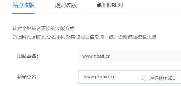 这里说个小技巧、如上图才算真正完全了301、如果提示【部分改版】【验证失败】,则需要查找问题、或删除重新提交、直到显示【改版完成】,一些兄弟在操作的时候、连看都不看、后面没改版成功、权重也没转移,导致流量损失,这是一个非常重要的点!