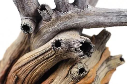 来自雕塑家Christopher David White的创意,最厉害的地方就在于用陶瓷模拟出木头的质感。每个作品都需要经历建模、造型和铸造等多个步骤,才能产生这些让人难以置信的纹理,并形成苔藓,风化木纹和微小水滴等各种细节。你甚至要催眠般的反复告诉自己:这不是木头这不是木头……