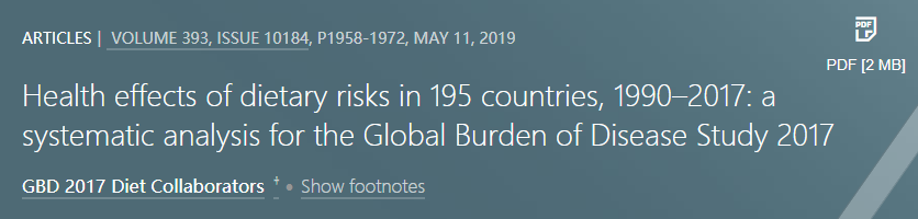 Health effects of dietary risks in 195 countries, 1990–2017: a systematic analysis for the Global Burden of Disease Study 2017