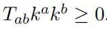 在时空中,光子的轨迹是一条类光曲线,这条曲线在时空中的每一点都有一个切矢量,记作类光矢量(k)。另外,爱因斯坦的引力方程中,有刻画物质信息的能量动量张量(T)。T是2阶张量,可以看成一个矩阵;而k是一个矢量,可以看成是一个列向量。因此,当T与两个k相乘,得到一个数。对于所有普通的物质,这个数是大于等于0的,这就是类光能量条件: