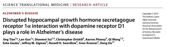这项发现也为我们理解衰老有了新的认识。 “随着年龄的增长,我们身体的代谢往往发生变化。这些变化会影响心脏,影响肠胃,但也许还会通过改变GHSR1α来影响大脑。”杜蘅博士说:“我们知道即使没有AD,许多老年人也有记忆问题,这可能与大脑中受体之间的分离有关,即使没有淀粉样蛋白。”