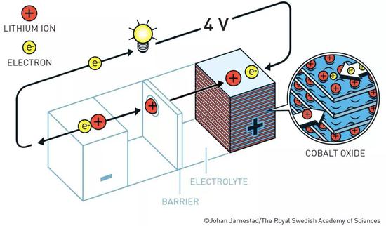 被誉为“锂电池之父”的约翰·古迪纳夫曾作出了一项预测,他认为如果使用金属氧化物而不是金属硫化物制成阴极,则阴极将具有更大的潜力。经过仔细地搜索与研究,他在1980年证明了嵌入了锂离子的氧化钴,可以产生高达4伏的电压。这是一项重要的成果。