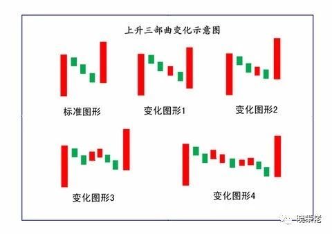 一般情况下,不出意外,在上升三部曲出现之后i,股价都会形成一轮较大的升势。标准的上升三部曲是:一是由大小不等的5根K线组成;二是先拉出一根大阳线或中阳线,接着连续出现了3根小阴线,但都没有跌破前面的开盘价,随后出现了一根大阳线或中阳线,其中走势有点类似英文字母的“N”字。