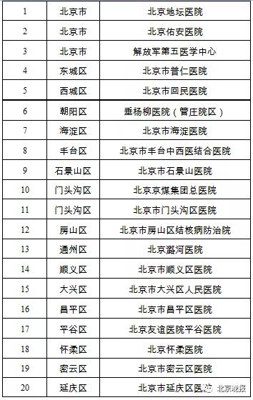湖北武汉发生新型冠状病毒感染的肺炎疫情后,北京市区两级分别确定了救治定点医院,其中,市级3所,区级17所。市级定点医院为:北京地坛医院、北京佑安医院和解放军第五医学中心,负责确诊病例的医疗救治,目前在院患者49例,有1例重症病例。