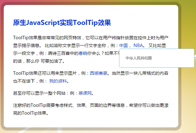 使用原生JavaScript设计和实现Tooltip浮动提示框特效,了解代码简化、事件绑定、事件冒泡等技巧和知识。