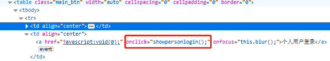 访问网站首页以后我们发现需要先点击个人用户登陆,且元素没有name、id登标识不好获取,所以我们直接执行里面的onClick方法