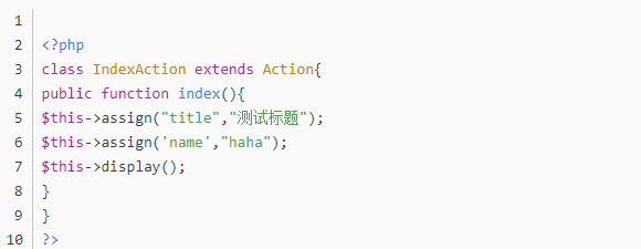 5. 在action中给变量赋值,\Lib\Action\ 如在IndexAction.class.php文件中写赋值代码: