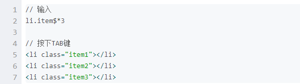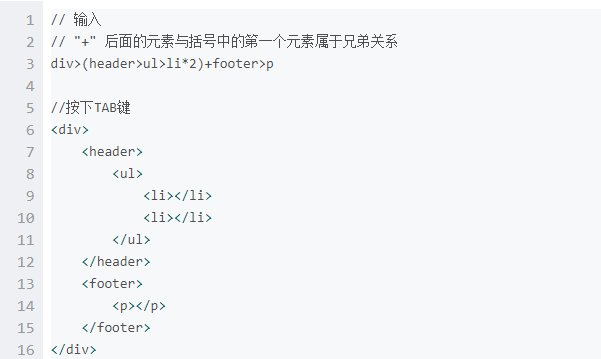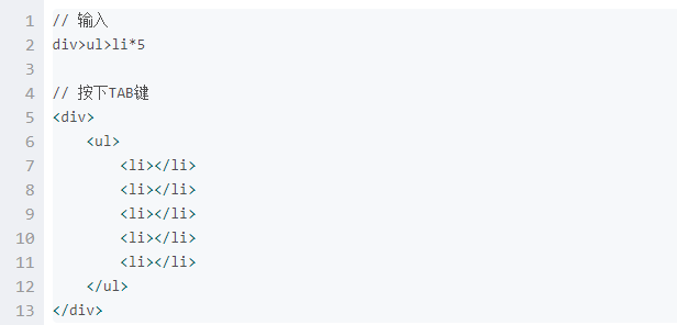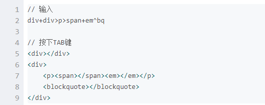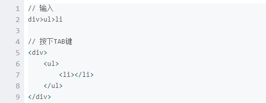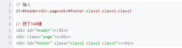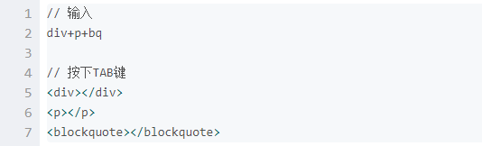 Emmet的html语法: