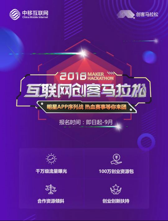 【创客马拉松大赛】中移互联网公司为响应“大众创业、万众创新”倡议,鼓励开发者使用移动认证能力进行创新而举办的赛事。赛事准备了四大参赛权益满足不同开发者的需要,致力扶持开发者创业、创新。