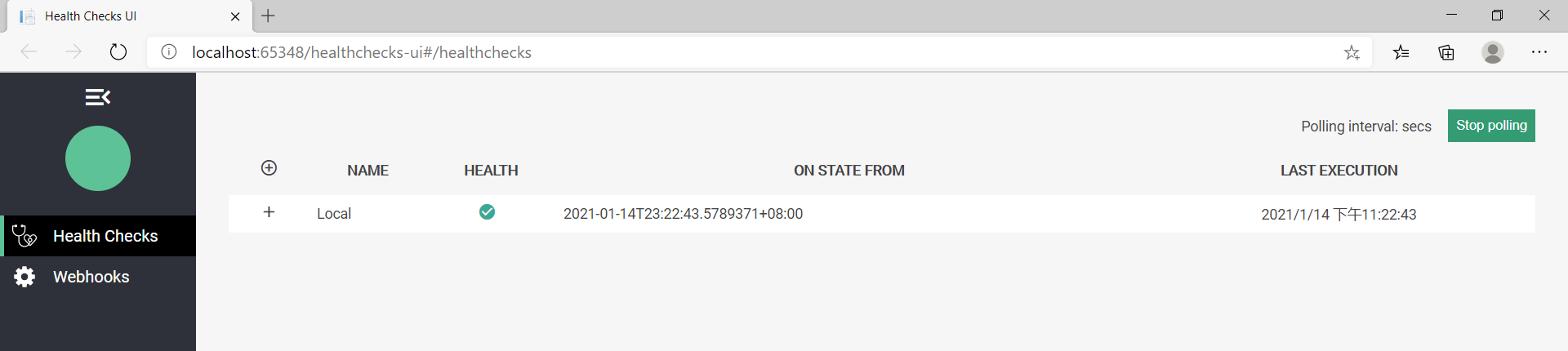 最后在浏览器中输入 /healthchecks-ui 看一下 可视化UI 长成啥样。