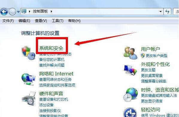 3、进入控制面板页面之后,点击系统和安全。