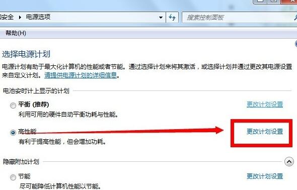 5、进入到电源选项中后点击更改计划设置。