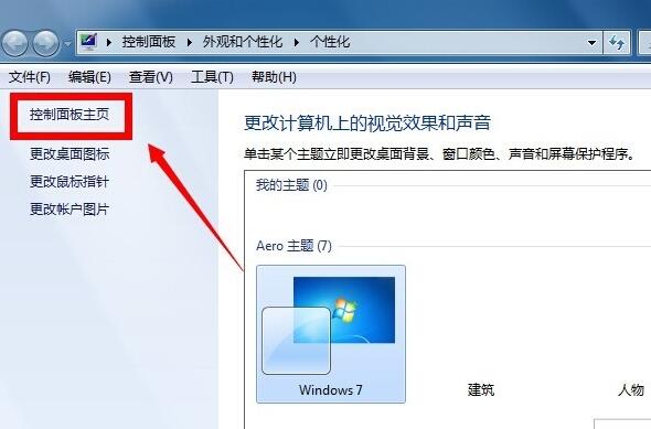 2、在左边的导航栏里面点击控制面板主页。