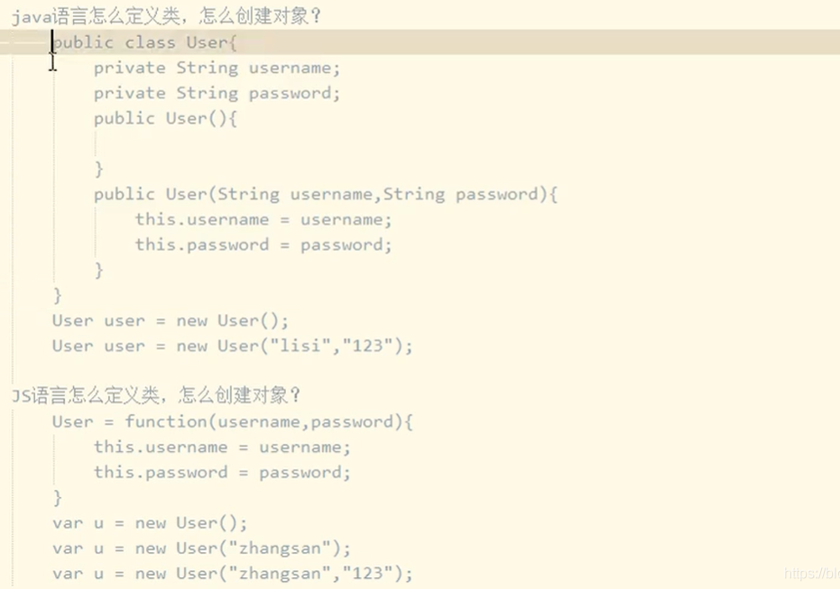 在JS中类的定义和构造函数的定义是放在一起来完成的。