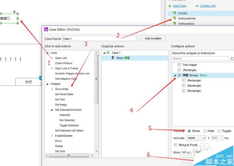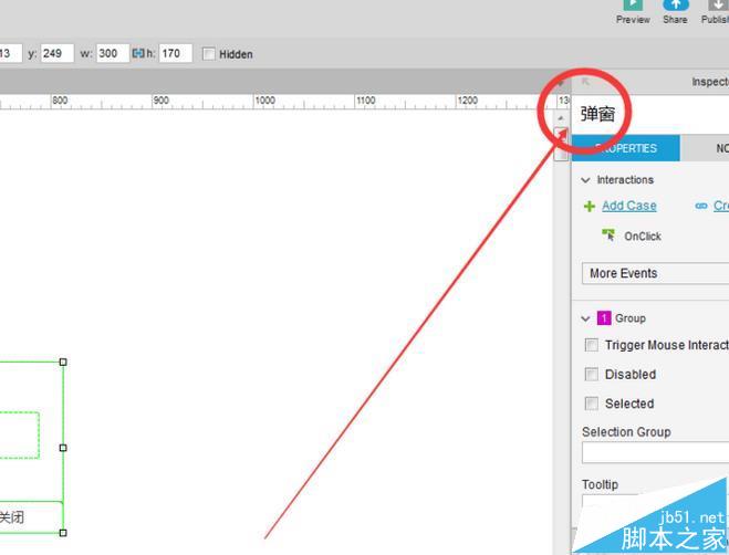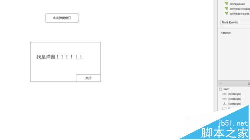 5、准备工作完了,开始设置效果,添加按钮关闭弹窗功能