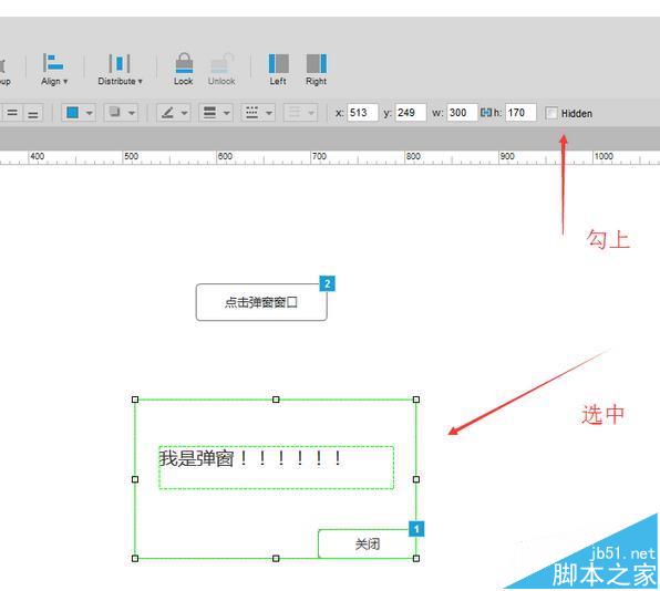7、最后不要忘了,把弹窗设置为隐藏
