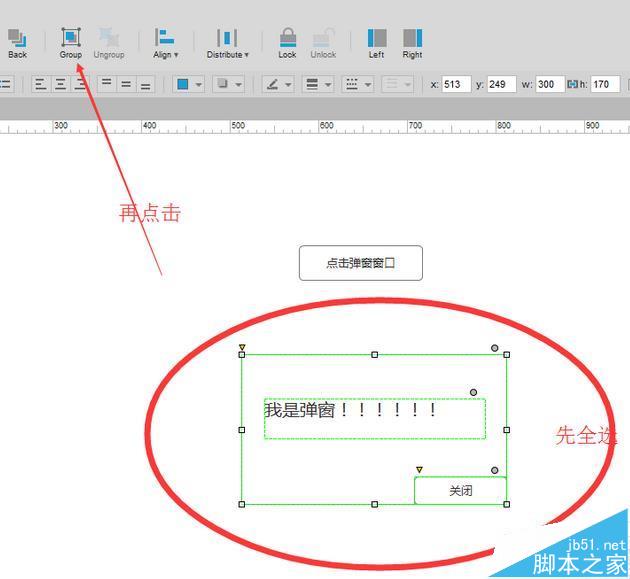 3、把弹窗组合成一个整体,全选然后快捷键ctrl+g,或者界面点击group
