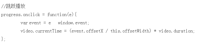 这样就可以实时显示进度条了,此时,我们还需要点击进度条进行跳跃播放,即我们点击任意时间点视频跳转到当前时间点播放。