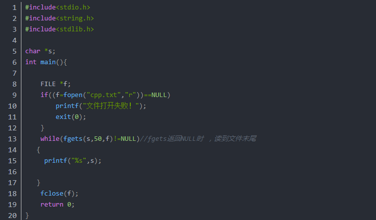 所以只能使用char s[51]这一种定义方式。并且定义时要注意,字符串长度要比fgets(s,50,f)里的第二个参数多一位,用来存放‘/0’。
