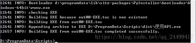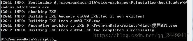 最后一句completed successfully表明创建exe成功。