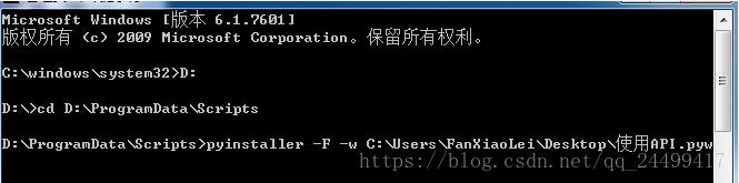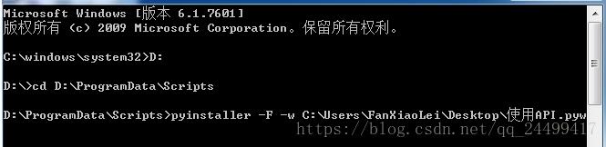 打开windows cmd命令提示符,进入pyinstaller安装目录的Scripts文件夹下。