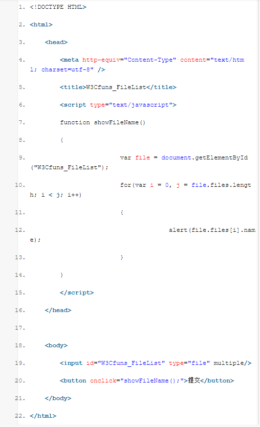 <input id="W3Cfuns_FileList" type="file" multiple/>