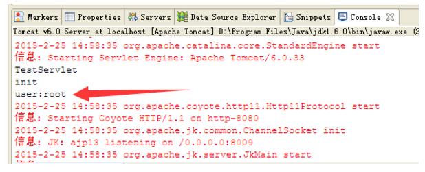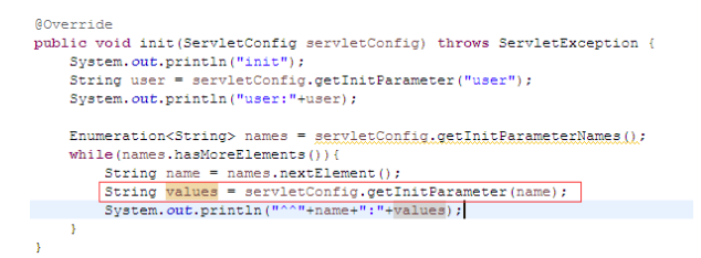 2.我们设置了两个参数,一个user 一个password并且都给它们赋值了那么我们先读取一个user在servlet的init函数中添加如下代码