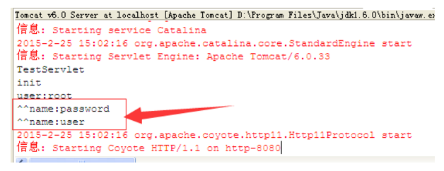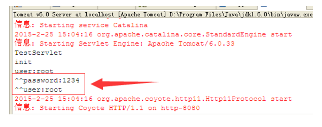 3.运行结果如下,可以正常读取可见函数getInitParameter("user"); 是在已知参数名的情况下可以读取出参数值