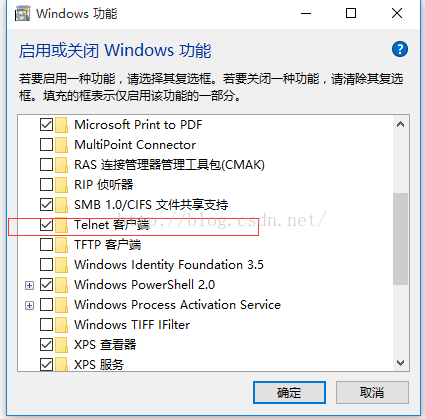 开始 → 控制面板 → 程序和功能 → 打开或关闭Windows功能,在这里就可以看到“telnet服务器”和“telnet客服端”。