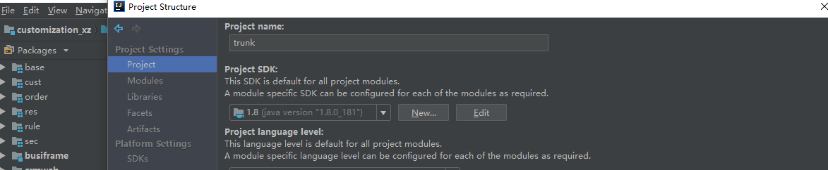 解决方法还有就是,有可能是JDK版本的影响,编译的时候有些无法识别,所以建议重新配置一下IDEA的JDK路径,重新选择。File-》Project Structure。尝试一下能否解决。