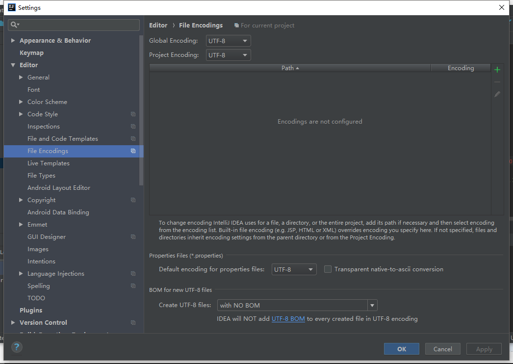 idea找不到符号,可能是因为编码问题,所以,在File-》settings-》Editor-》File Encodings-找到编码设置,更改为项目的编码要求,一般都为utf-8,或者可以试一下GBK其他编码编译一下,反正我是几种方式都试了。最终编译结果比较之下,发现公司的项目编码格式是以UTF-8为基准的。建议三个编码格式都选择一样的。