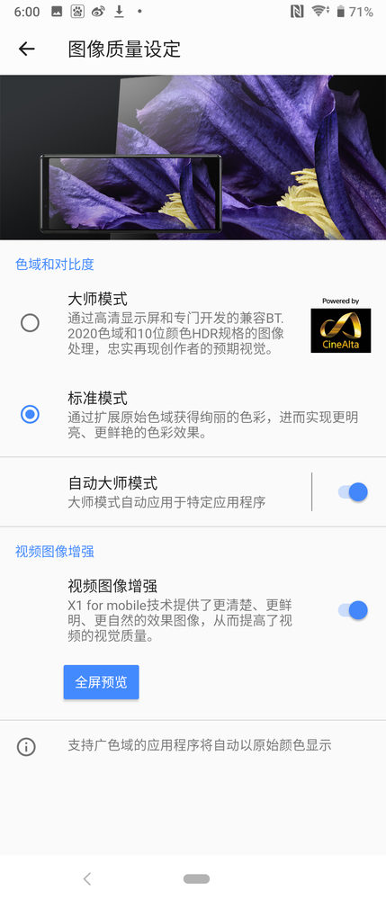 唯一有些遗憾的是,虽说索尼官方提供了“自动大师模式”,不过该模式仅限特定的应用程序使用。我测试了诸如爱奇艺、优酷视频、腾讯视频等主流的视频播放平台,发现这些App均不支持自动大师模式,如果未来索尼能够提供手动选择开启大师显示模式的接口,我想体验会更出色。
