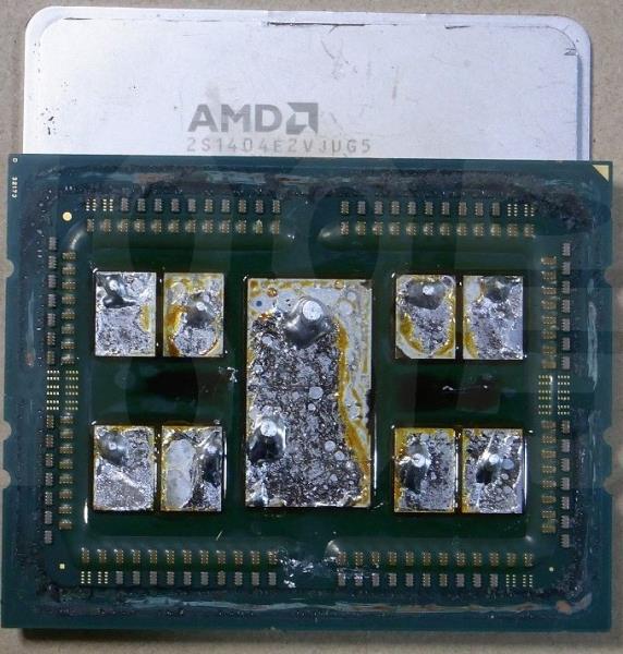 消费级CPU中的硅脂vs钎焊导热争议了六七年了,不过现在Intel高端处理器又改回导热系数更高的钎焊了。在这方面,AMD倒是坚持使用钎焊,日前有网友开盖了64核的EPYC处理器,结果也是钎焊。