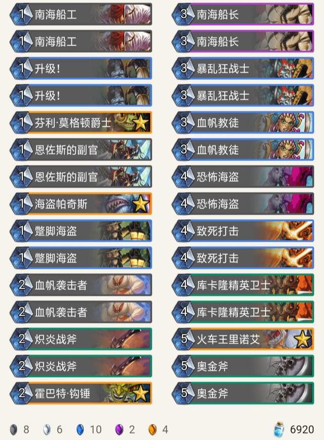 三十年河东,三十年河西。如今,我们再难见到鼎盛时期的海盗战了,狂野模式中强度固然有,但也不再能跻身T1了。有人说,海盗站是真男人才玩的卡组,真男人从不叠甲从不挨打。有人说,海盗战是孤儿才玩的卡组,一个随从交换的游戏玩成了打脸传说。显然,这两者的理论仅存在于刚用海盗战砍翻了别人或者刚被人用海盗战砍翻。无数个版本之后,我们回首再看这套完美的卡组,绝对是一套快攻界的荣耀卡组,无语伦比的伤害与节奏,是一套毋庸置疑的好卡组,毋庸置疑的强力卡组。
