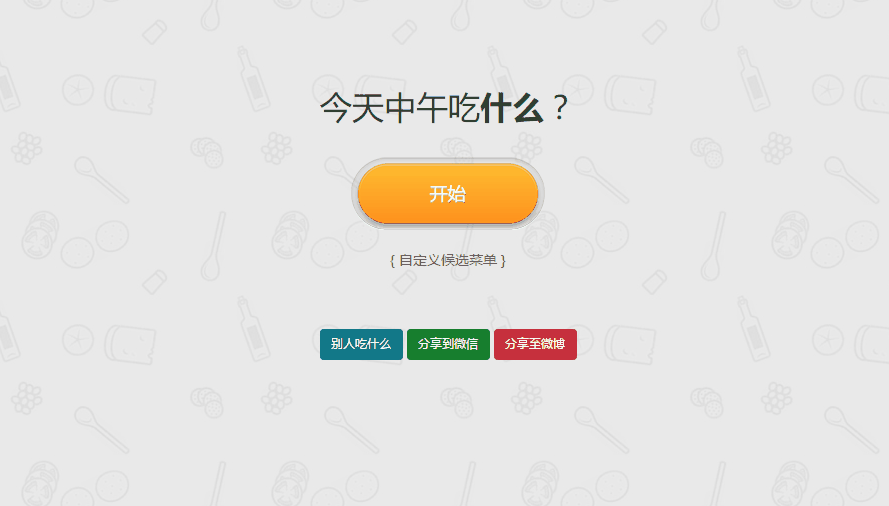 是不是总在纠结午餐吃什么?这个网站是选择恐惧症的福音,中午不知道吃什么就试试它吧,开始-停止,听听看它让你中午吃什么吧!