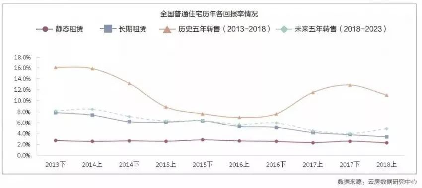 放眼未来,在“房住不炒”的基调下,全国房价不存在大幅上涨的空间。但随着热点二线城市“人才引进”及城市快速发展的利好,人口吸引力将逐渐增强,购房需求增加,房价或将缓慢上行,导致未来五年转售回报率小幅上升。