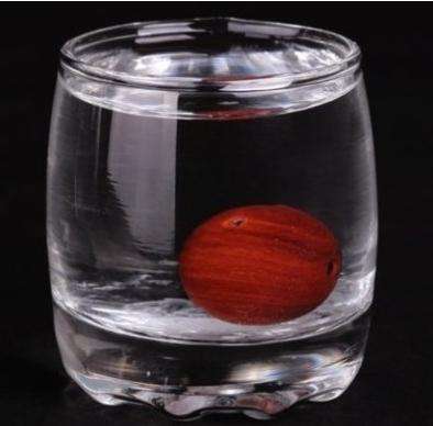 紫檀的比重大于1g/cm⊃3;,这样一来它就可以沉于水中,那么无论是一块木块还是一颗珠子,若是紫檀就必能沉水,这是鉴别紫檀最简单的方法之一。但要注意的是,除了紫檀之外,还有很多木材也可以沉水,所以不能作为绝对鉴别的方法。同时,一些紫檀制品,例如直径小的紫檀珠子,因为打孔或者上蜡以及表面张力等物理因素等,也会出现不沉水的情况,会使新人发生误会。