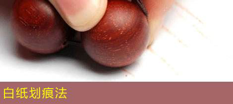 这种方法非常简单,就是用木片或木珠在白纸上划,若是紫檀,根据表面氧化时间长短所导致的颜色不同,会在白纸上划出紫红至橘黄色的划痕。但这并不是鉴别紫檀的唯一有效方法。因为在目前已知的其它木材中,也有相似的情况就是例如说红酸枝和血檀经此实验后也有近乎相同的表现,虽有差异,但对于新人来讲是很难辨别的。所以,我们还需要综合更多方法来辨别紫檀。