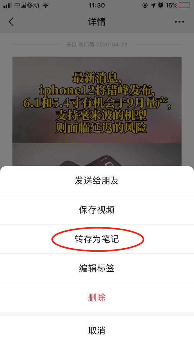 3、点击右上方的“...”选择将收藏内容转为笔记
