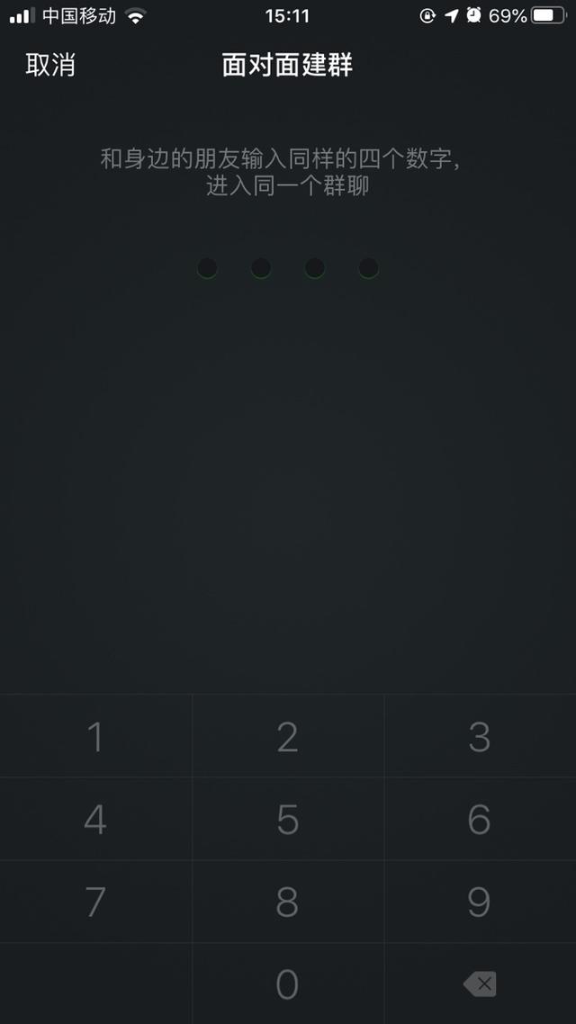 ② 点击“发起群聊”的功能以后选择“面对面建群”,和身边的朋友输入同样的数字即可进入同一微信群聊。