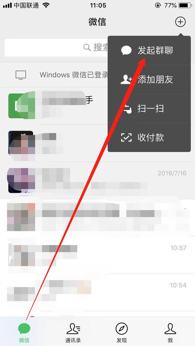 微信自带发起群聊的功能,通过微信右上方的【+】处可以进入该功能,在选择该功能后我们有两种建群的方法。