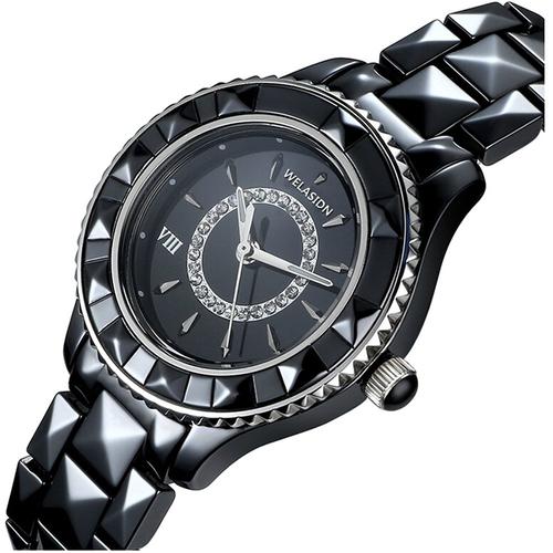与不锈钢材料的手表相比,陶瓷手表的重量减轻了大约60%,其硬度约为不锈钢材料的10倍,而且耐锈蚀和耐热性能好,具有高硬度,不易磨损,永不退色,不损肌肤的优点。