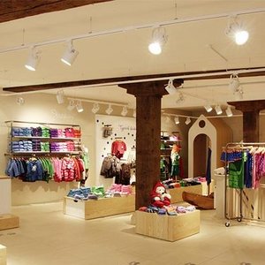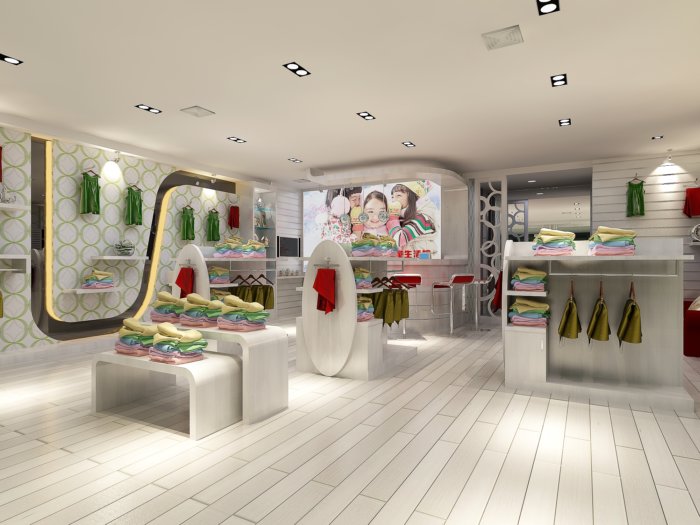 1、我们装修童装店的空间设计一定要区分开,应该将婴儿区与学步儿童区加以大致区分,但为使尺寸及风格让家长们容易了解,所以,在平面计划上有必要做纵向及横向的交叉的配置。此外,其店中所设品牌最好能够从店门望去即可获得辨识。