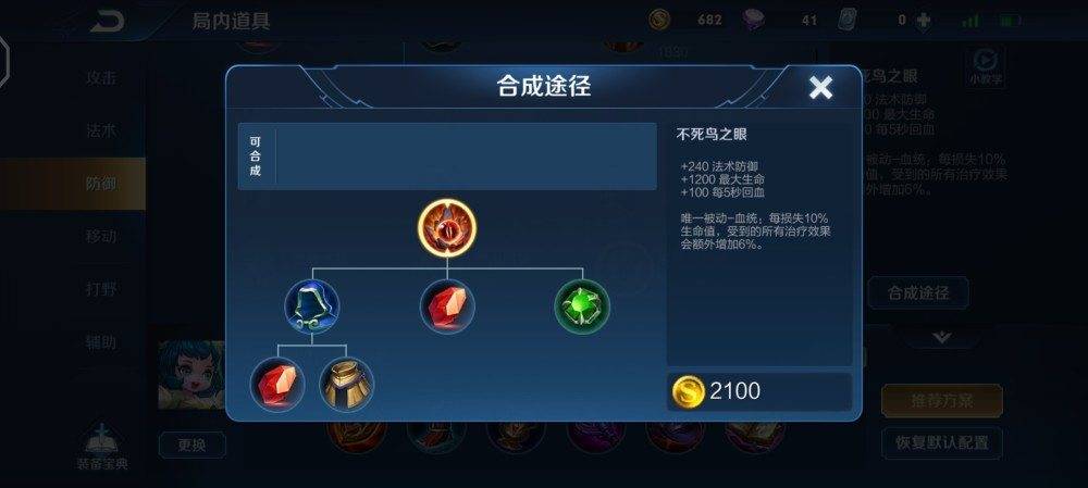 最后将贤者之书替换成了不死鸟之眼,其实换成魔女斗篷也可以,只不过不死鸟之眼提供的高额生命回复使得性价比变得很高。因为选蔡文姬对方必然会出制裁之刃或者梦魇,使得蔡文姬的生命回复能力大打折扣,而不死鸟之眼则可以很大程度使得蔡文姬生命回复效果保持在一个很不错的状态下。