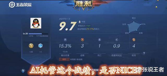 老张个人觉得,AI托管的实力尚可,但是仍然起不到决定性的作用!就以老张所在的分段为例(王者三十星),AI托管只能保证不坑,但是带飞还是比较难的。打完之后AI托管的排名基本上是四五名。操作只能称得上是平平无奇,没有太强的惊艳之处!总结来说就是意识还算不错,但是操作却辣眼睛!