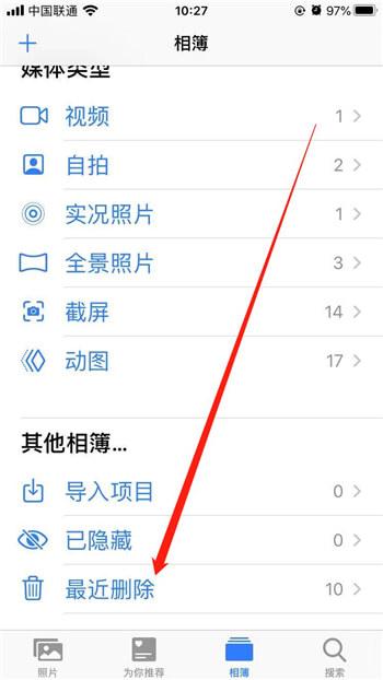 咱们需要分多种情况进行讨论,最简单也是最容易恢复的情况是仅在相册中删除了照片,这种情况我们可以在苹果手机的最近删除相册中找到需要恢复的内容进行恢复。点击苹果手机的照片进入相簿,在相簿界面最下方找到最近删除查看需要是否有需要恢复的内容,找到需要恢复的照片选择将其恢复到相册即可在照片中正常查看。需要注意的是,我们删除的照片仅仅会在最近删除相册里保留30天,如果删除了照片需要恢复,一定要在这个时间之内完成恢复哦!