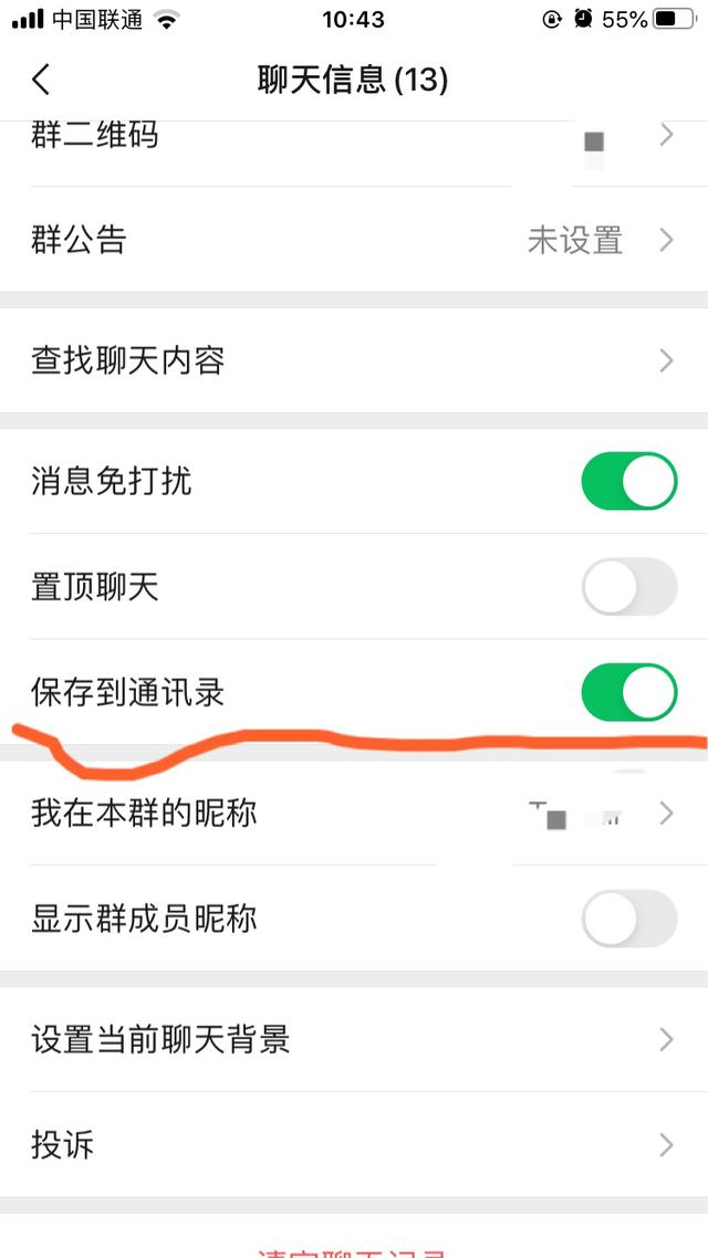 最后要提醒大家,在创建微信群聊之后,如果需要保留这个群,最好在聊天信息界面将开启将群保存到通讯录,不然删除对话框之后会无法再找到这个微信群。