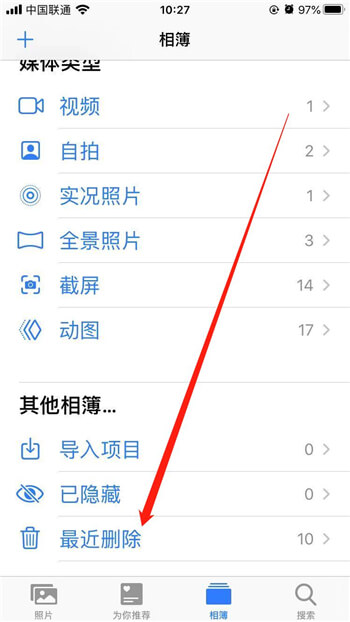在苹果手机的相簿中,我们可以通过最近删除相册查看30天之内被删除的照片,被我们删除的内容都会保存在这个相册里,如果没有进行清理,通过最近删除相册都可以将这些被删除的内容恢复出来。